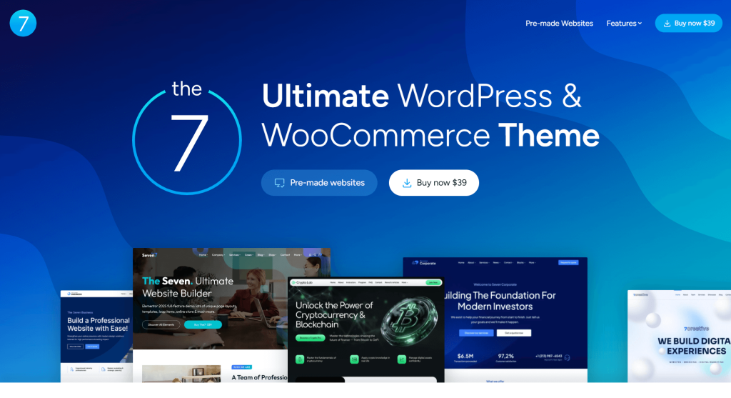 The7 is a highly customizable and performance-focused WordPress & WooCommerce theme designed for businesses, online stores, agencies, and corporate websites. As one of the best-selling themes on ThemeForest, The7 offers deep design control while remaining beginner-friendly.