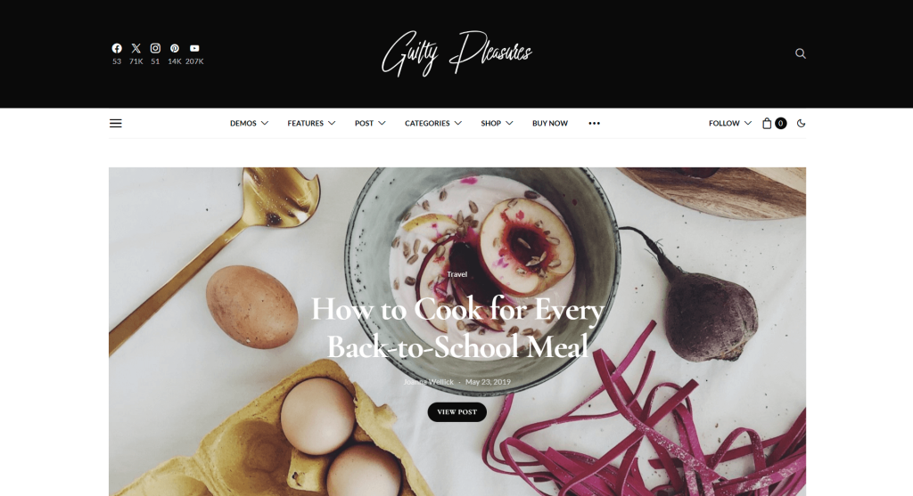 This theme is perfect for food bloggers who want to blend storytelling with delicious recipes, creating a more engaging and personal experience for readers. It features a revolutionary block-based Elementor page builder, making customization simple, flexible, and beginner-friendly. Plus, it is packed with pre-built post layouts which allows you to display posts in more than unique layouts which gives you a great ability to create your unique and beautiful food blog.