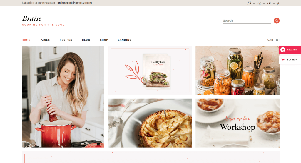 The theme includes captivating templates for nutritionists, cooking, cookbooks, baking, chefs, and recipe cards, along with elements for food bloggers, chef recipes, ingredients, organic food, and more. With its built-in style editor, you can customize the look and feel of your website with ease. This makes it easy to create a unique blog design that expresses your individual personality and style. On top of that you also get full Elementor and WooCommerce compatibility, as well as every feature you’ll need to get noticed in the nutrition and recipe community! All in all, Braise is an excellent option for those looking for an attractive, modern food blog theme.