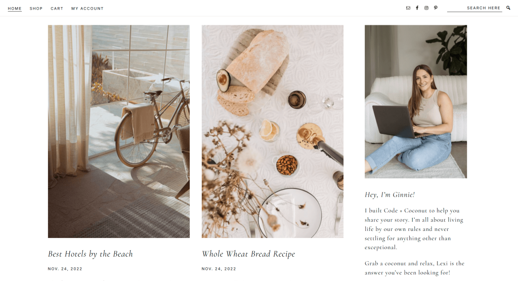 The theme includes a block collection library which allows you to use to insert any sections or entire pages into any page or post. This allows you to create some unique layouts, reuse sections and pages anywhere on your blog site. It also has several page templates which includes homepage, about, shop, recipe index, cookbook, Instagram links, lead magnet/opt-in, contact and so on. Sage is fast, SEO optimized, and fully customizable to match your brand. This theme is crafted with recipe bloggers in mind, and will truly work for any food blogger!